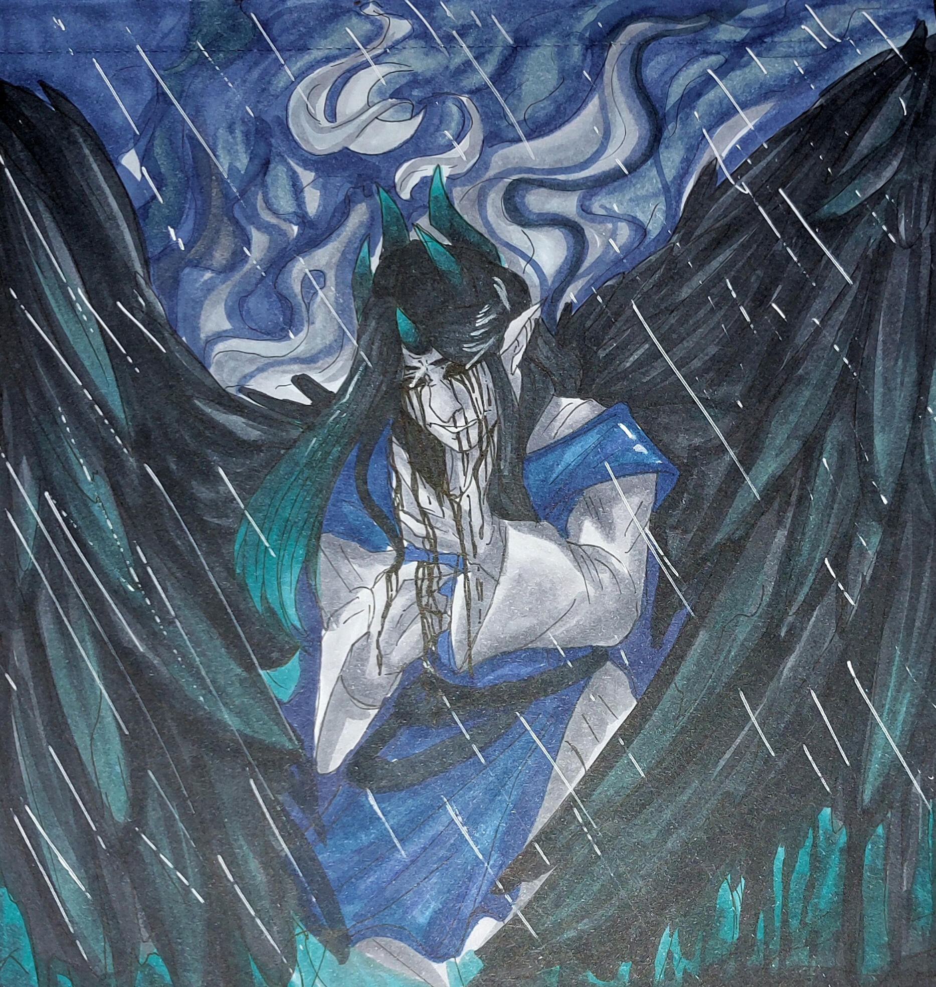 Looking up to the blood-red sky, he scoffed to himself. How fitting, the colours. A grey for the smoke of fire, and a red for the blood watering the grounds.