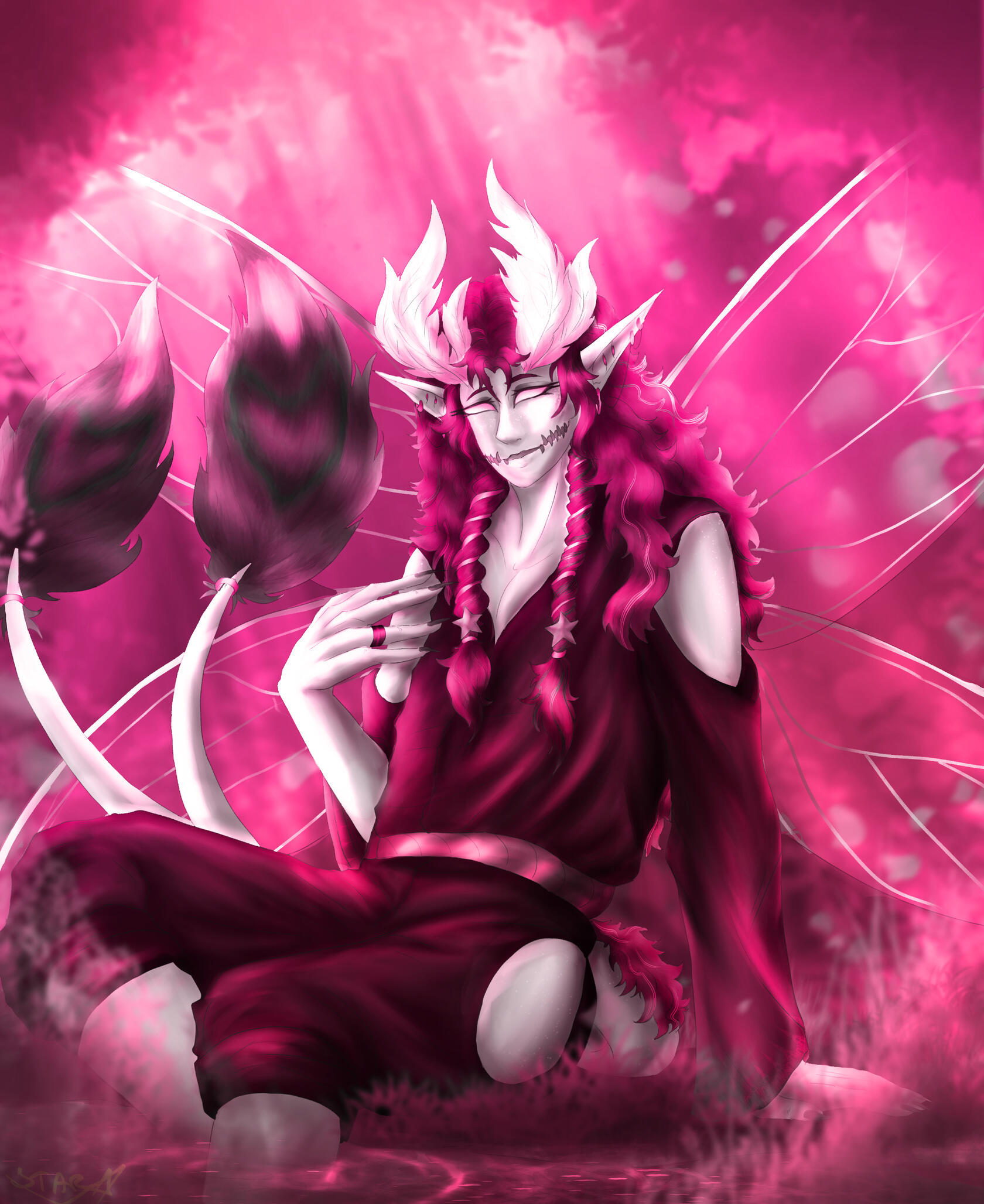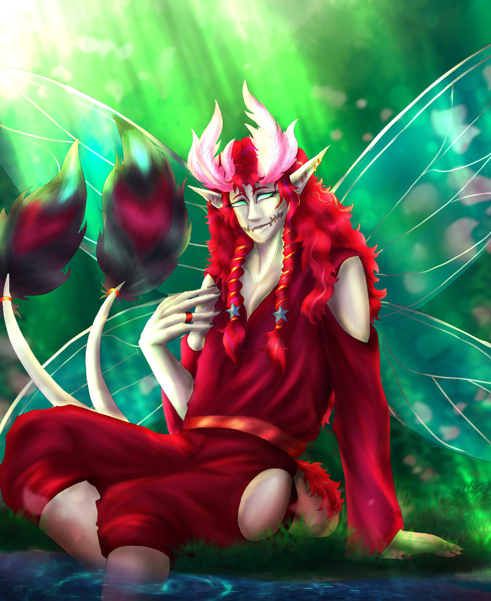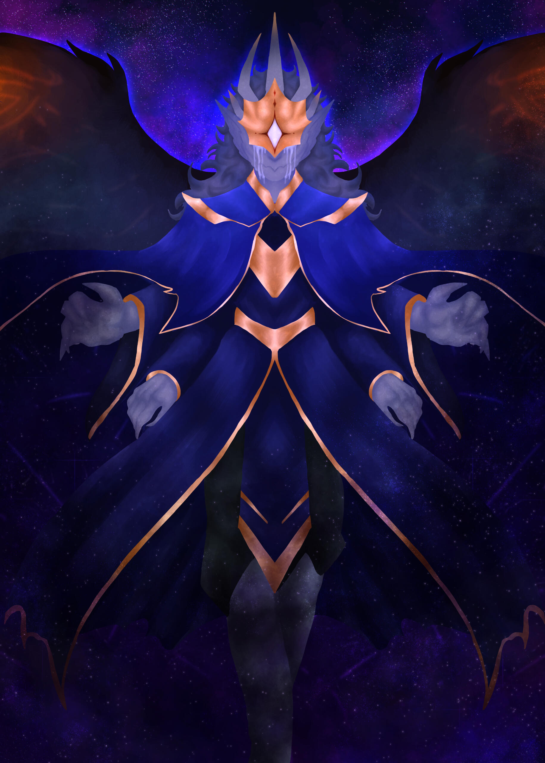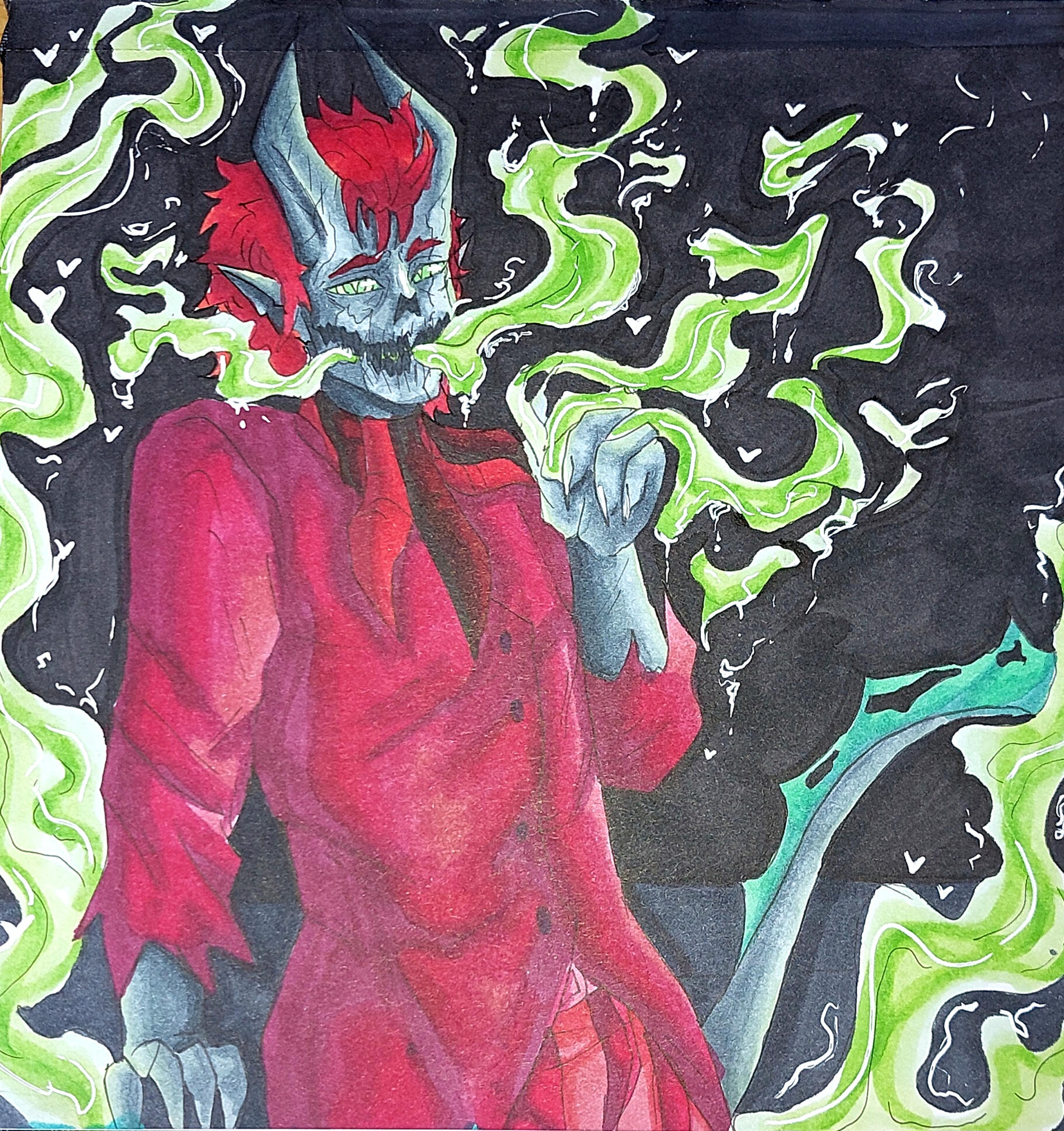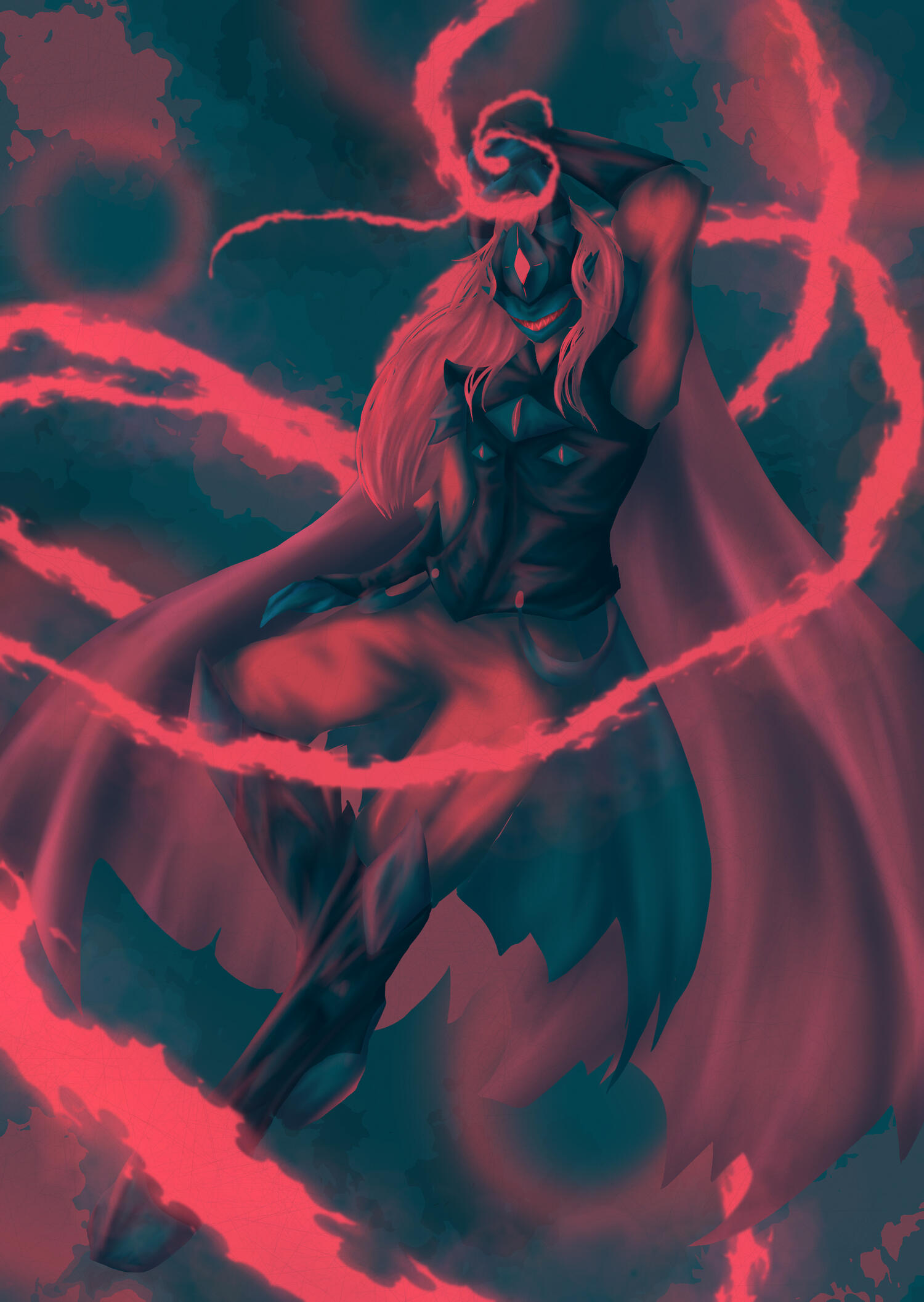 The illustration depicts the character Lorian Drevorak, a physical embodiment of Scopophobia belonging to the Court Nightingale, set in one of my written settings which has simply just been named “Delirium”.
